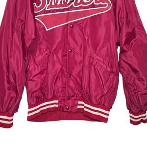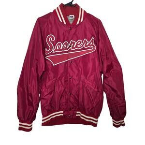 Vintage Rare Russell OU Oklahoma Sooners Bomber Jacket Red White Satin Mens XL