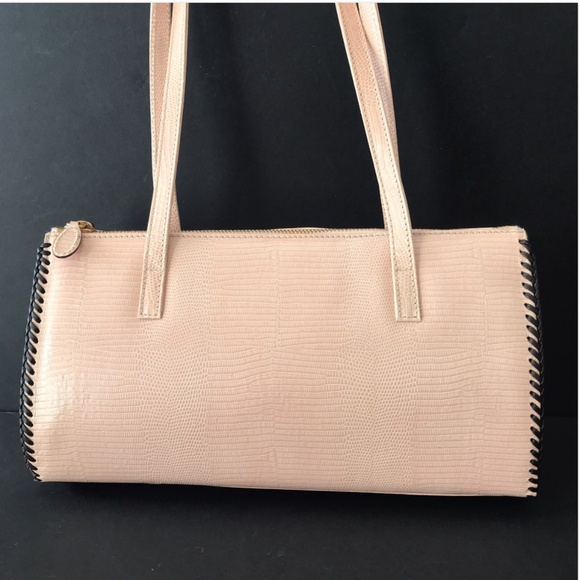 Vintage Rare Saks Fifth Avenue Genuine Leather Shoulder bag Textured Lizard- Embossed Finish Italy Peach