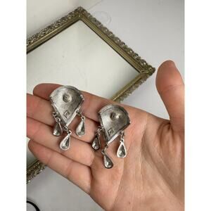 Vintage Rare Silver and Enamel Teardrop Dangle Earrings