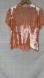 Peach beading around all edges: neckline, shoulders, end of sleeves, all around hem up sides - rest sequins allover