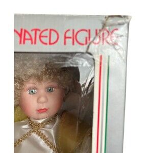 This vintage motionette figurine features a unique Anime-style Angel character, perfect for a Christmas display. Standing at 18 inches tall, this illuminated figurine is powered by a wall plug-in and comes in its original box. Sold by Woolworth, this late 20th-century piece from Taiwan showcases intricate animation and is a part of the Angel collection. The motionette is not signed or modified, making it a rare find for collectors of original animation-themed decor.