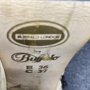 Step into retro style with these rare vintage Y2K Buffalo London mega platform ankle boots! Featuring a bold zebra stripe design, these boots are sure to make a statement. The chunky platform sole adds height and edgy flair, perfect for adding a unique touch to any outfit. A must-have for any vintage fashion lover!
