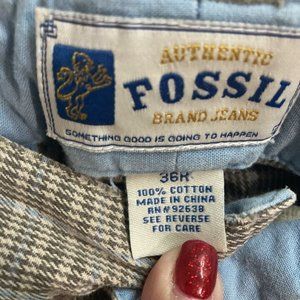 Elevate your wardrobe with these vintage rare Y2K Fossil striped trouser pants. The blue, flared leg dress pants are made with comfortable cotton fabric and come in a women's size 36. The pants feature pockets, making them both stylish and functional. The striped pattern adds a unique touch to the classic design, making them perfect for any occasion..