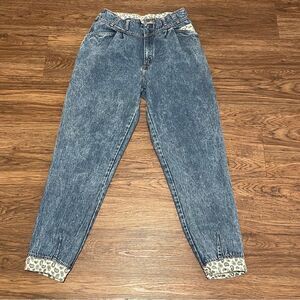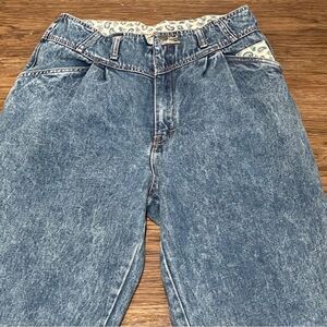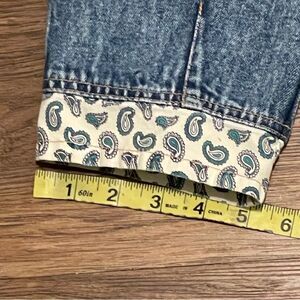 Vintage Rare High Rise Acid Wash Tapered Jeans Blue With Cream Paisley Trim 12