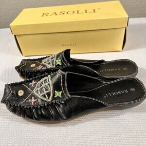 Vintage Rasolli Woman’s Size 8 Slip On Black Leather Office Casual Flats