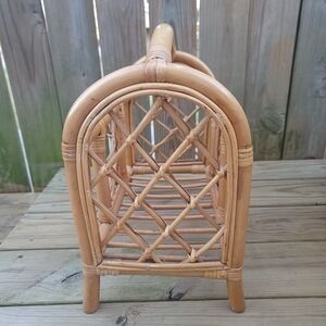 Gorgeous vintage boho magazine rack or plant stand! Could hold records too! In really excellent condition. Almost perfect. Very sturdy.