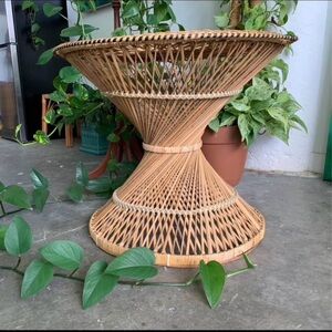 This is a natural rattan hourglass accent table. Hand Made in Indonesia. Great condition.