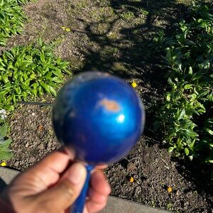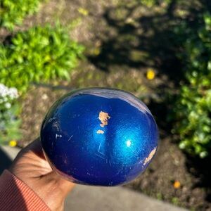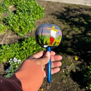 Percussion Musical Instrument Hand-Painted Blue Tropical rattle is perfect for the avid musician and would also make a great gift! There are scuffs on this instrument, making it great for a small refurbish project. Please see photos for scuffs.