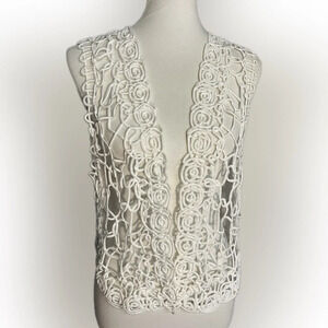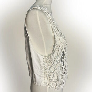 Vintage Ravel White Vest, Unique Piping Design, Boho Layering Unique - Size L