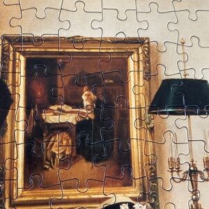 Excellent puzzle quality with matte finish that resists shine. All pieces present. Pieces slip together beautifully. Few false fits. Clear images. Artwork by Greg Olsen. Vintage puzzle. Pieces are larger than the typical Ravensburger pieces. Pre- blue backing.
