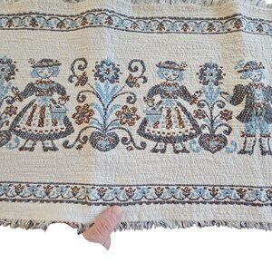 Vintage Raw Edge Hem Scandinavian Folk Art Linen Embroidered Table Runner