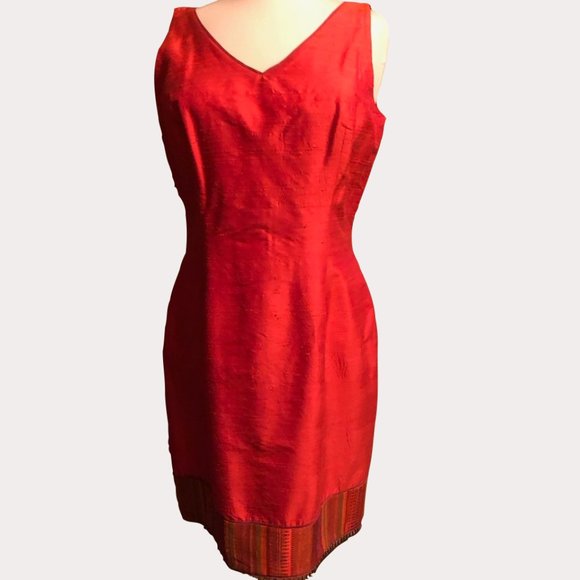 Fashionable Silk Blend dress Fully Lined with Beaded Hemline, Other than missing one bead, this dress is great shape. Flat measurements: Bust: 20; Waist: 18"; Hips: 20", Length: 37"