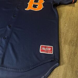 Vintage Rawlings Baseball Button Up Jersey Mens Size 48 Blue Orange Embroidered