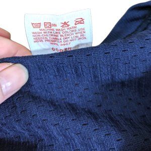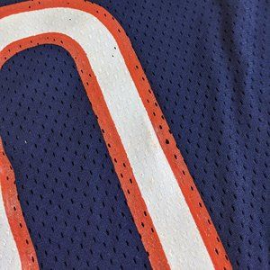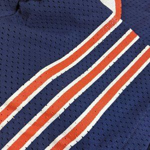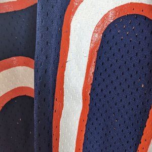 Description: Very bright, thick, and appealing printing on the jersey. The three orange and white stripes on both sleeves are striking. Traditional GHS print on the sleave. No team name or player name is listed on the shirt. My research shows #50 as Mike Singletary that played for the Bears from 1981-1992. Red Rawlings patch sewn on to the jersey.