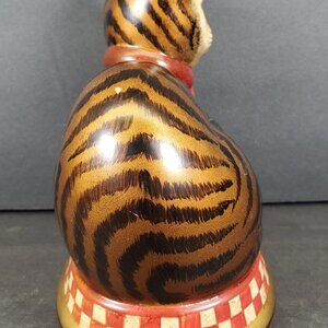 Hand-painted in a tiger‐striped pattern with a decorative ball under the paws
