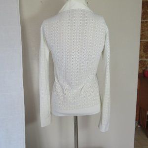 Vintage Rayure Paris Lace Button Up Blouse from the '70s. Features large and long collar, v-neck, button up lace material with long sleeves.