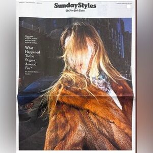Vintage real fur jacket. I’m not sure what kind of fur this is…. Possibly rabbit. If anybody knows feel free to reach out. It’s made up of small patches in shades of brown and tan with suede panels on the sides. It has a standup collar and hook and loop closure. There are two spots that need repair, please see photos. Not visible when wearing the fur. The size is not marked, so please see measurements. It fits like a women’s medium-large. It definitely has a funky, cool girl vibe to it that is so of the moment see the cover story on the New York Times style section.