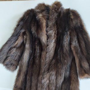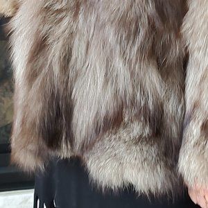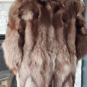 Vintage Real FUR COATS ARE BACK IN STYLE!!! This BEAUTY was custom designed and hand made by Olga Furs, New York. The designer used a natural FOX fur for the body, which is about 2 inches in length, making it soft and gorgeous. Then added a shorter, special treatment of RABBIT around the hemline and on the sleeves to give this artwork it's special effects. It has hook and eye closures, 2 satin lined pockets and a standup collar. This piece is AMAZING!!!!