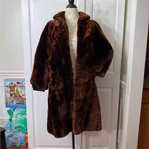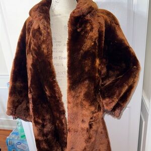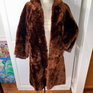 Vintage Real Fur Shearling Brown Trench Coat Size Medium Large