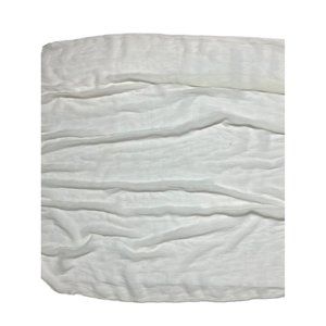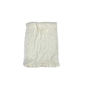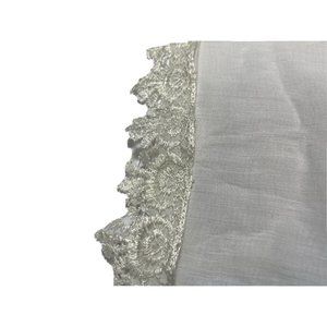 An ivory, real silk fabric textile, with an intricately hand-sewn lace applique bordering each end. Sheer and lightweight.