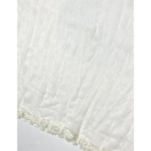 Vintage Real Silk Drapery Textile Fabric Sheer Off-White Lace Trim Runner Decor