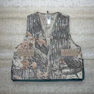 Vintage Realtree Hunting Camo Vest Woodland Cotton Full Zip Shell Holders 90s