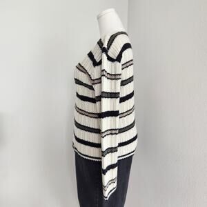 In excellent vintage condition, a black, white and brown ribbed knit striped sweater long sleeve neutral in size medium by Reba Rose