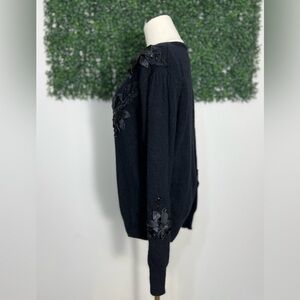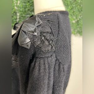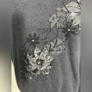 Vintage Rebecca Gray Wool Angora Black Floral Beaded Embroidered Sweater Size S