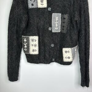 Vintage Rebecca Stone Gray Button Up Floral Applique Cardigan Sweater Medium