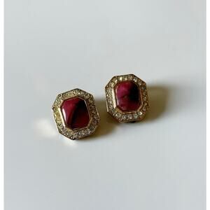 Vintage Rectangle Rhinestone Clip On Earrings