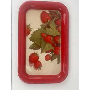 Vintage Rectangular Metal Tray Strawberry Design 14" x 9" Retro Kitchen Decor