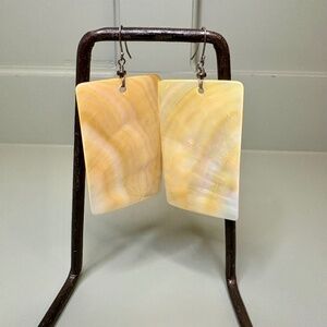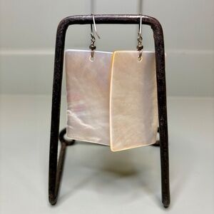 Vintage Rectangular Mother of Pearl Shell Drop Earrings Boho Dangle Iridescent
