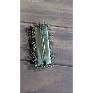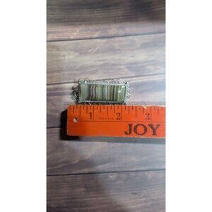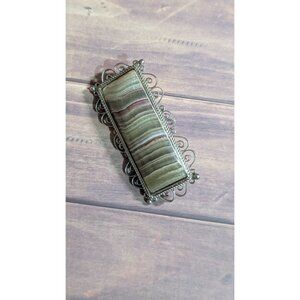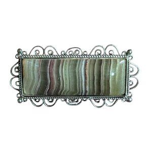 Vintage Rectangular Stone Brooch With Filigree Silver Frame