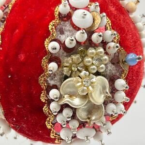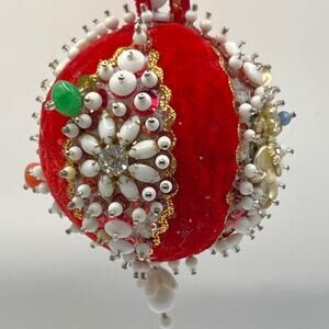 Vintage Handmade Ornament Sequin Beaded Push Pin Velvet Christmas