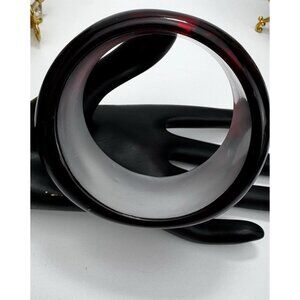 Vintage Red And Black Lucite Wide Bangle Bracelet 8.5” Retro Chunky Transparent