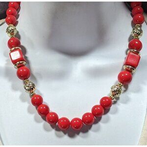 Discover timeless elegance with this vintage red and gold tone beaded necklace. Perfect for any occasion, this statement piece adds a touch of sophistication to your ensemble, making it a must-have accessory for fashion enthusiasts.