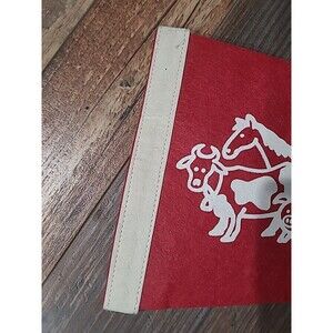 Vintage Red And White Green Meadows Farm Stiff Felt Pennant 17x8