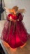 Charming red angel figurine with a glowing light. Adorned with gold chain details and white feathered wings. 13” tree Topper….porcelain head