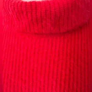 Vintage Pierre Cardin Red Angora Wool Teacher Turtleneck Sweater – Size M – 50% Lambswool 40% Angora Rabbit Hair 10% Nylon blend with removable shoulder pads, ribbed knit and soft fuzzy texture. Very good preloved condition.