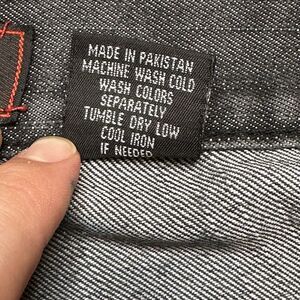 The product is a pair of men's vintage Red Ape baggy jeans in grey color, made of cotton denim fabric with a dark wash. The jeans have a relaxed fit, a high rise, and a straight wide leg style with a 30-inch inseam and a 5-pocket design. They feature a zip and button closure, zipper accents, embroidered logo, and Red Ape branding. The jeans are suitable for winter, summer, fall, and spring seasons and have a rock, punk, grunge, 90s, retro, and hip hop theme.
