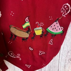 Vintage Red Bandana Picnic Ant Food Embroidered V-neck Button up Vest XL