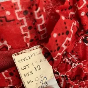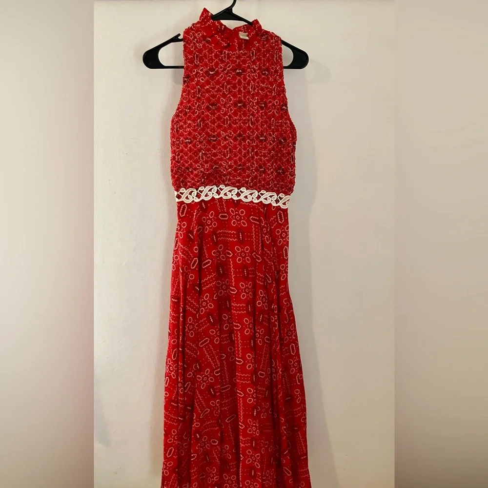 Vintage Red Bandana Print Maxi Dress Sz 12 SEE MEASUREMENTS Ruffle Collar