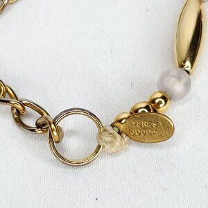 Vintage Red Bead Necklace Goldtone White Clear Frosted Teresa Goodall 16"