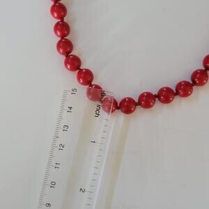 This vintage red bead necklace is a timeless jewelry piece that adds bold color and elegance to any look. Featuring round red beads with a smooth polished finish, each bead is hand-knotted for strength and durability, giving the necklace a refined style that stands out. Measuring approximately 16 inches in length, it sits gracefully at the collarbone and is secured with a gold-tone spring clasp for a classic touch. The vivid red beads make this necklace perfect for both everyday wear and special occasions, from casual outings to parties or evening events. Its retro charm is reminiscent of 1950s and 1960s jewelry, making it a great choice for collectors and lovers of midcentury fashion. Whether worn on its own as a statement piece or layered with other necklaces, it enhances any outfit with vintage sophistication. This necklace also makes a thoughtful gift for birthdays, anniversaries, or holidays, offering a lasting and stylish keepsake.