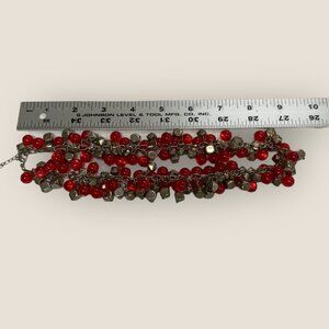 Vintage Red Beaded Statement Necklace With Gold-Tone Chain & Adjustable Clasp