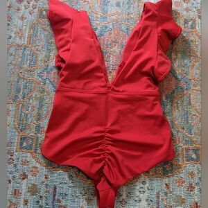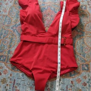 Vintage Red Belted Ruffle One Piece Swim Size M