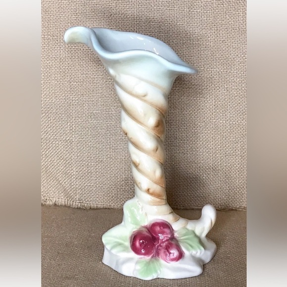 Vintage Red Berry Cornucopia Vase Porcelain Cottage Fairy Grandma Core