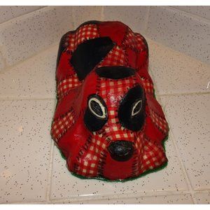 Vintage Red & Black Patchwork Dog Door Stopper decoupage