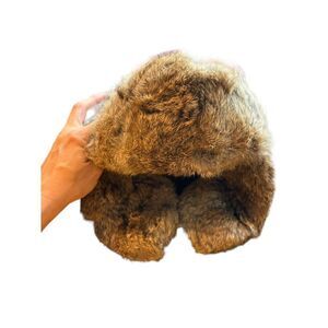 Vintage Red & Black Plaid Trapper Hat With rabbit Fur Lining
