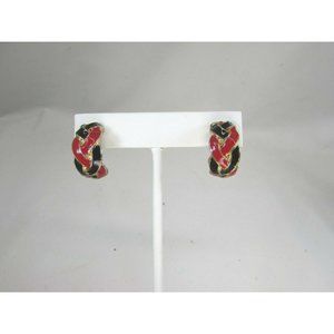 Vintage Red Blue Braided Enamel Pierced Earrings 51524
